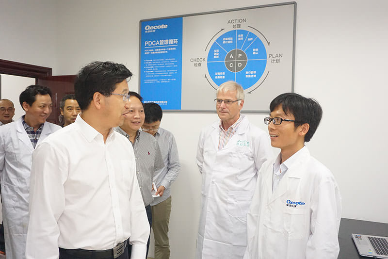 7月6日下午三时,绍兴市市委书记陈金彪及市部分领导一行,莅临我公司研究院进行考察。行间,奇彩环境总经理张云保向其详细介绍了公司发展现状及研究院固、气、液“三废”治理技术发展情况。“全国独创”、“国际领先”,陈书记对公司研发多项尖端环保处理技术及工艺表示赞许,不时与在场研究人员攀谈了解,并对公司“高学历化、年轻化、国际化、专业化”的团队表示嘉许。参观结束后,作为绍兴高新区有效投资重点项目代表,公司总经理张云保随同市领导出席座谈,席间交流公司发展规划,并为共建美丽蠡城建言。